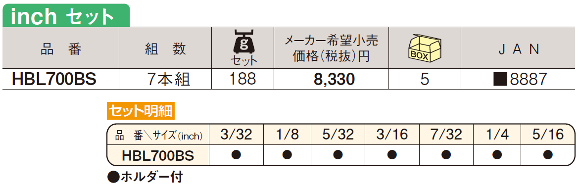 L型ホローレンチボールポイントスタビーロングインチ7本組セット 【発注コード】 【JAN】 L型ホローレンチボールポイントスタビーロングインチ7本組セット 作業用工具 作業工具・仕上工具 作業工具・仕上工具 MITOLOY ¥ 5,831 数量 (セット): 0 カートに入れる